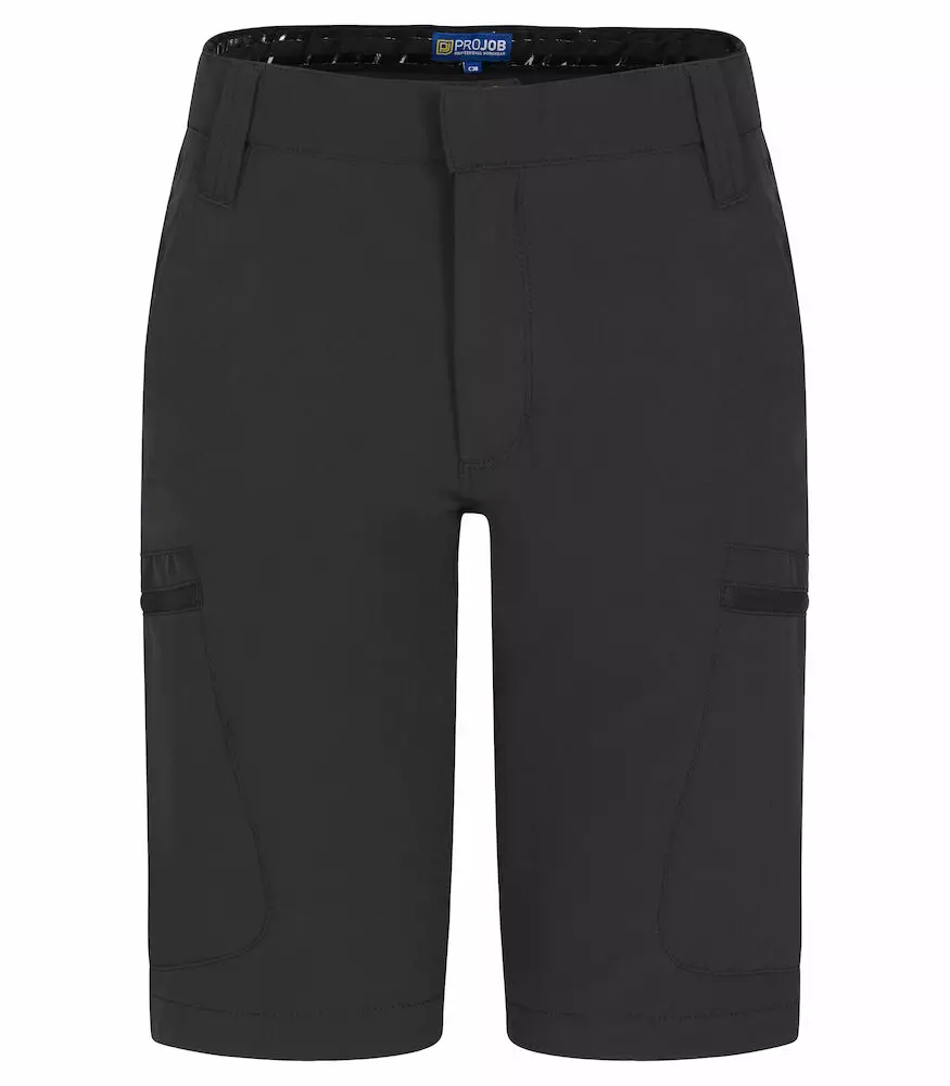 Joustavat työshortsit mahdollistavat hyvän liikkuvuuden. Moderni, tiukka leikkaus. Ommeltu, säädettävä ja joustava vyötärönauha mukavuuden vuoksi. Sivutaskut molemmilla puolilla. Molemmilla sivuilla vetoketjulliset reisitaskut ja myös vetoketjulliset takataskut. Takana leveämpi vyölenkki, joka estää vyön painamisen. Edessä piilonappi.