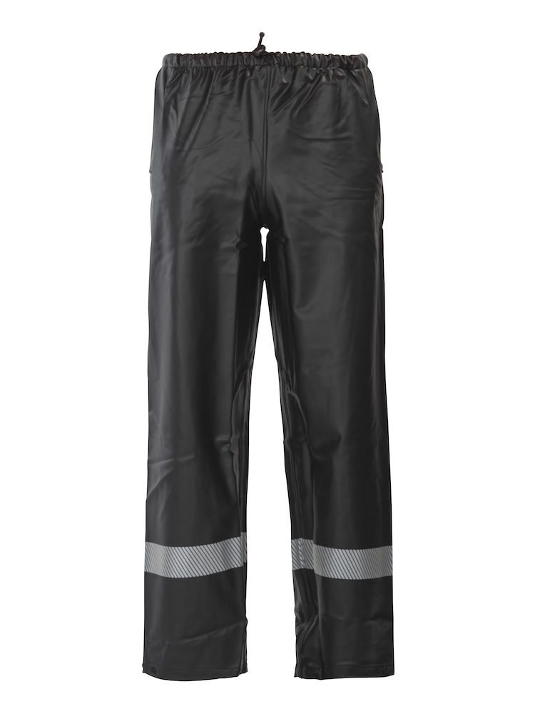Ommellut, hitsatut ja teipatut saumat. Joustava vyötärö. Etutaskujen sisäpuoli hengittävää verkkokangasta, taskuissa läpät. Lahkeensuussa heijastin. Materiaali: 58 % PVC, 27 % polyesteri, 15... Lue lisää