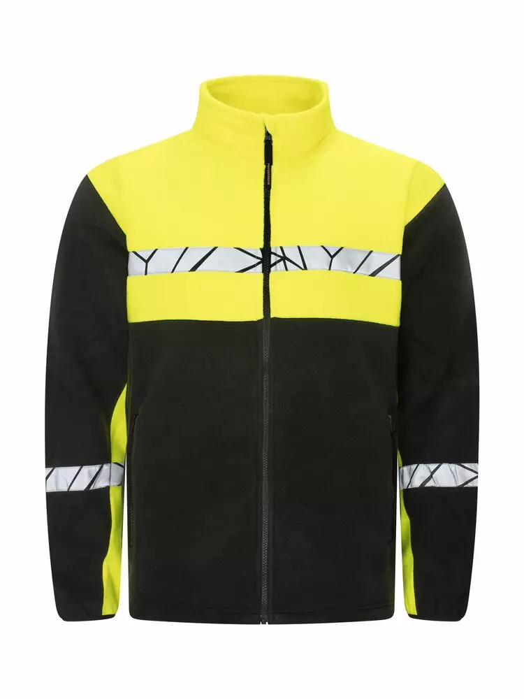Vetoketjullinen fleecetakki, jossa leukasuoja hankauksen estämiseksi. Kontrastinauha niskassa. Vetoketjulliset sivutaskut. Säädettävä kiristysnyöri helmassa. Mikrosiru vasemmassa sisäsaumassa.