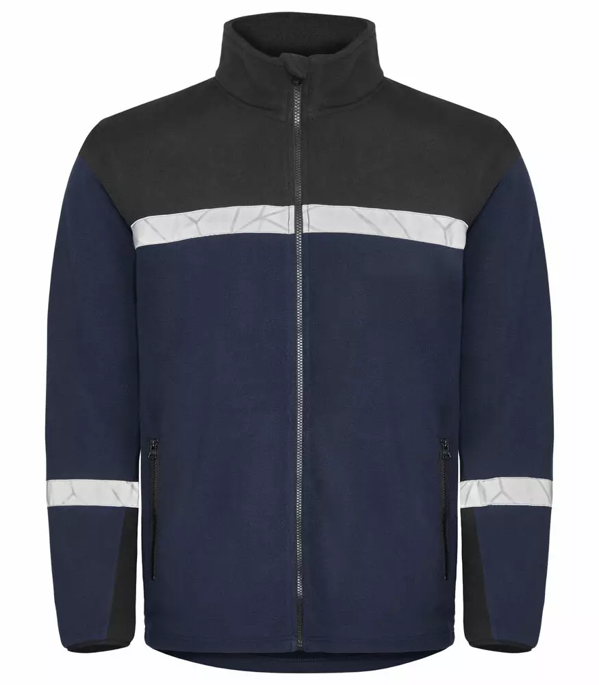Vetoketjullinen fleecetakki, jossa leukasuoja hankauksen estämiseksi. Kontrastinauha niskassa. Vetoketjulliset sivutaskut. Säädettävä kiristysnyöri helmassa. Mikrosiru vasemmassa sisäsaumassa.