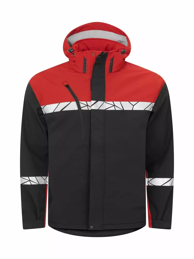 Tekninen takki tuulta ja vettä hylkivästä softshell-materiaalista. Edessä vetovetju, jossa tuulelta ja vedeltä suojaava lista. Oikealla puolella rintatasku, jonka sisällä ID-korttipidike. Vetoketjulliset sivutaskut. Avoimet sisätaskut. Pidennetty selkäosa. Irrotettava ja säädettävä huppu. Säädettävät hihansuut tarranauhalla ja säädettävä vyötärö kiristysnyörillä. Mikrosiru vasemmassa sisäsaumassa.