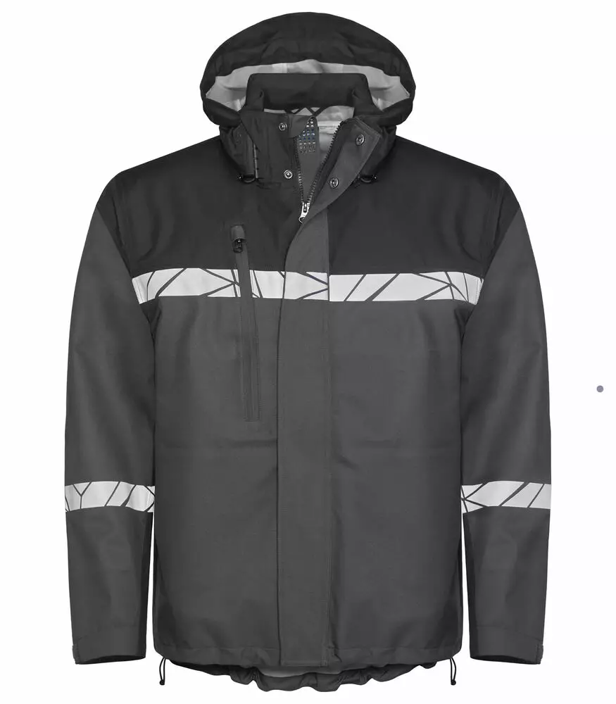 Kuoritakki veden- ja tuulenpitävästä materiaalista teipatuilla saumoilla. Edessä vetoketju ja tuulelta ja vedeltä suojaava lista, jossa painonappikiinnitys. Irrotettava ja kiristysnauhalla kahdella tapaa säädettä huppu. Sivutaskut, tilava rintatasku oikealla puolella ja yksi sisätasku vasemmalla puolella. Kaikissa taskuissa vetoketjut. Säädettävät hihansuut tarranauhalla ja säädettävä vyötärö kiristysnyörillä. Mikrosiru vasemmassa sisäsaumassa.
