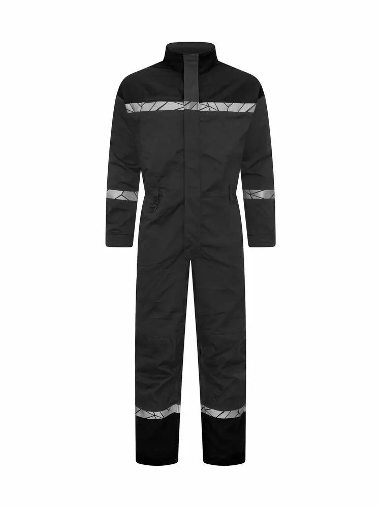 Haalari kaulukseen asti ylettyvällä kaksisuuntaisella vetoketjulla. Edessä lista, jossa painonappikiinnitys. Rintatasku oikealla puolella, jossa ID-korttipidike. Molemmilla puolilla syvät sivutaskut, myös housujen taskuihin ulottuvat aukot haalarin alla. Reisitaskut molemmilla puolilla. Vasemmalla puolella läpällinen ja tarrakiinnityksellinen tasku ja sisäinen puhelintasku. Oikealla puolella taskut kynille ja paperille. Polvisuojataskut, jotka avautuvat ulkopuolelta vetoketjulla. Muotoillut polvet, joustavaa kangasta haaroissa ja vyötäröllä mukavuuden lisäämiseksi. Takataskut, vasemmassa läppä ja magneettikiinnitys. Tarranauhalla säädettävät hihansuut.
