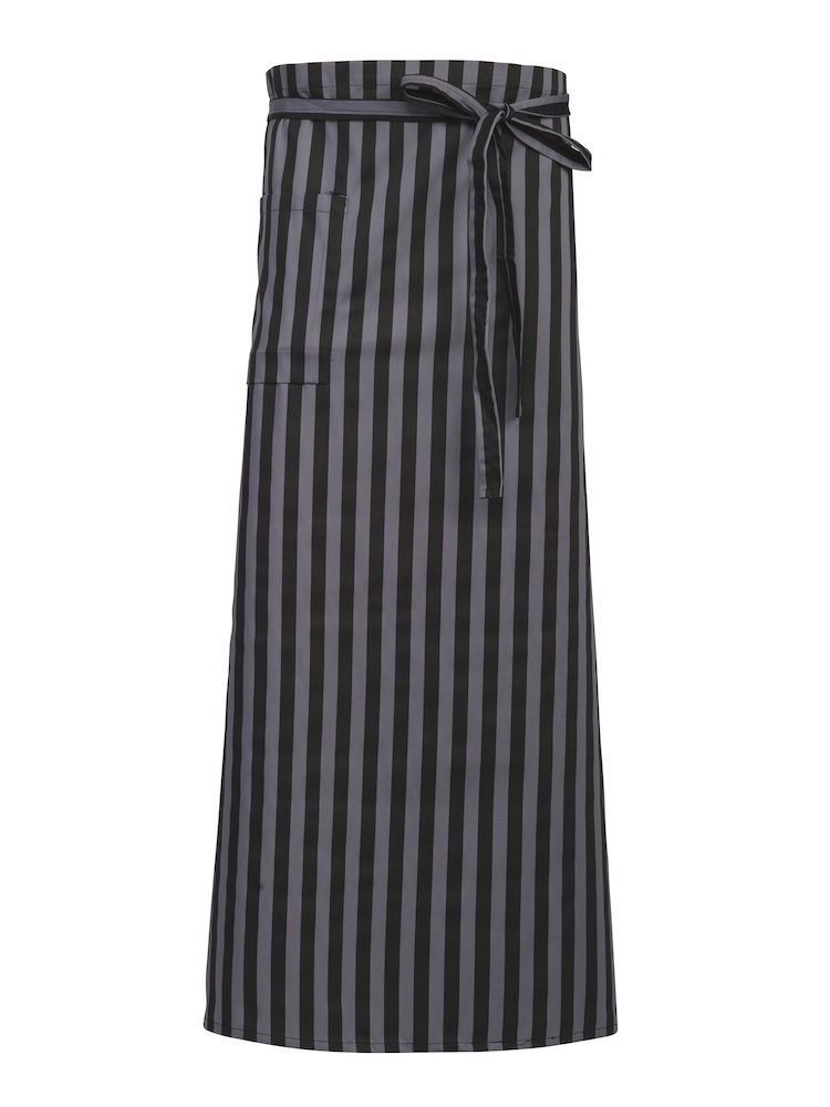 Tyylikäs, raidallinen vyötäröesiliina jossa tasku oikealla puolella. Materiaali: 65% Polyesteri, 35% puuvilla Paino: 210 g/m² Hoito-ohjeet: MachineWashGentle60, DoNotBleach, IroningMediumTemp... Lue lisää