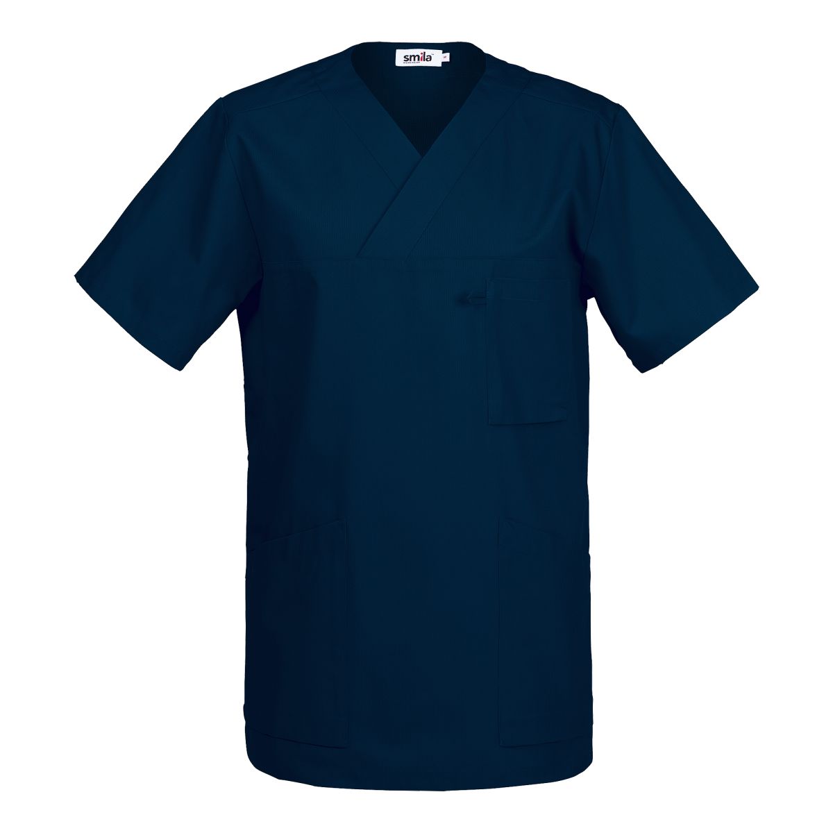 V-aukkoinen unisex-tunika. Suora ja mukava malli. Edessä tilavat päällitaskut, joista toisessa avainpidike. Rintataskussa korttipidike. Tilava malli, jossa on kokojen välillä tavallista suurempi ero. Takapituus 74 cm koossa M.