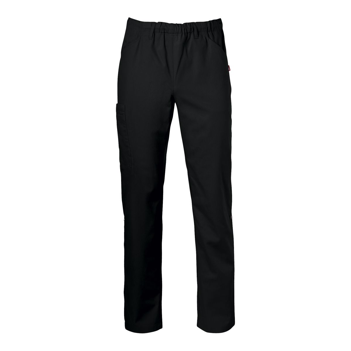 Miellyttävät unisex-housut. Tilava ja mukava malli, jossa vyötäröllä kuminauha ja nyöri. Edessä tilavat sivutaskut ja oikeassa lahkeessa kaksi reisitaskua sekä kynätasku. Lahkeensuissa säätötamppi, jolla lahkeet voi kääriä lyhemmiksi lämpimissä olosuhteissa. Lahkeen sisäpituus 84 cm koossa M.
