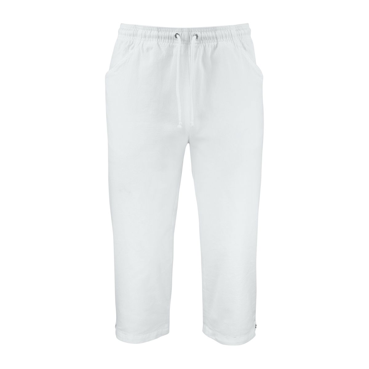 Cid Trousers, White (101) Unisex-caprihousut. Tilava ja mukava malli, jossa vyötäröllä kuminauha ja nyöri. Edessä tilavat sivutaskut. Lahkeen leveyttä voi säätää pyöreällä painonapilla.... Lue lisää
