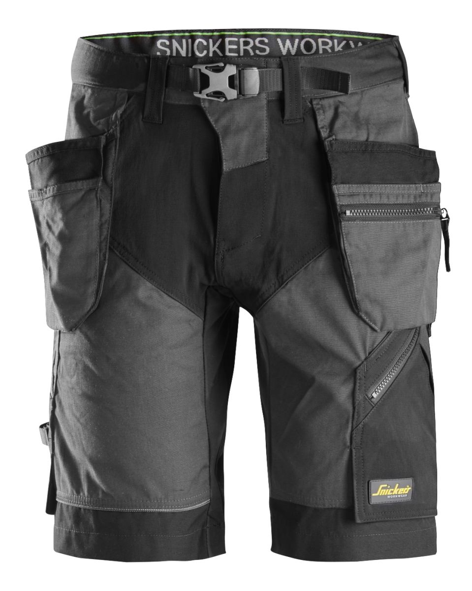 Snickers 6904 FlexiWork+, työshortsit riipputaskuilla, 5804 Teräksenharmaa/musta