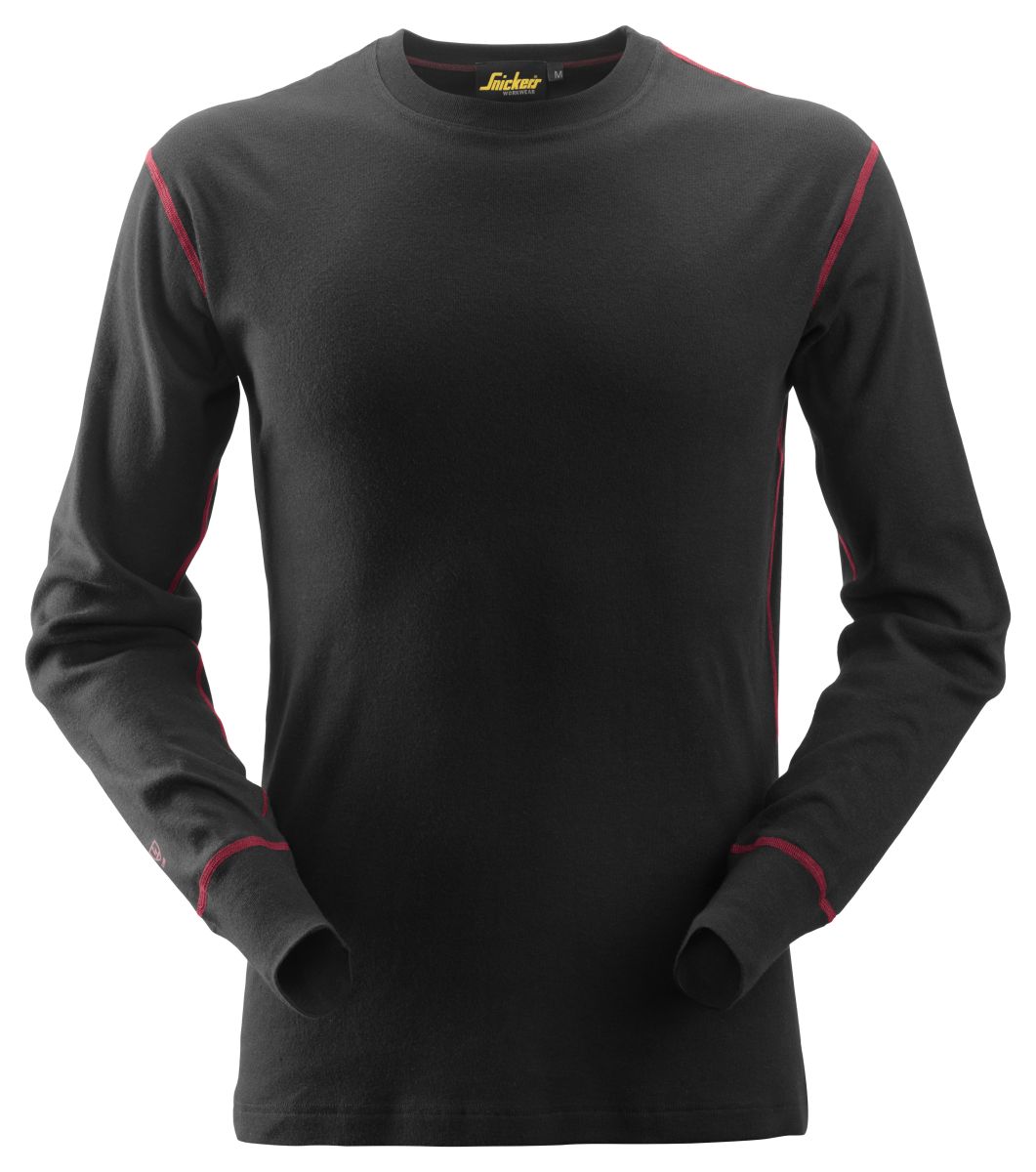 Snickers 9461 ProtecWork, pitkähihainen aluspaita pyöreällä kaula-aukolla, 0400 Musta