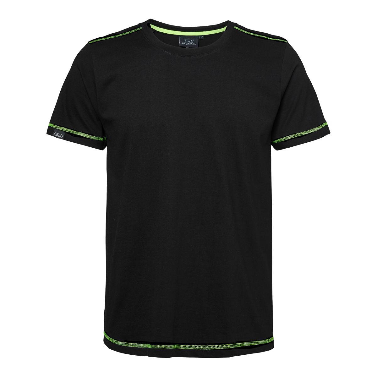 Moderni viimeistelty T-paita single jersey-trikoota. Selkeät yksityiskohdat ja tehokkaat tehosteväriset tasosaumat. Pääntieresorin elastaani auttaa pääntien säilyttämään muotonsa.