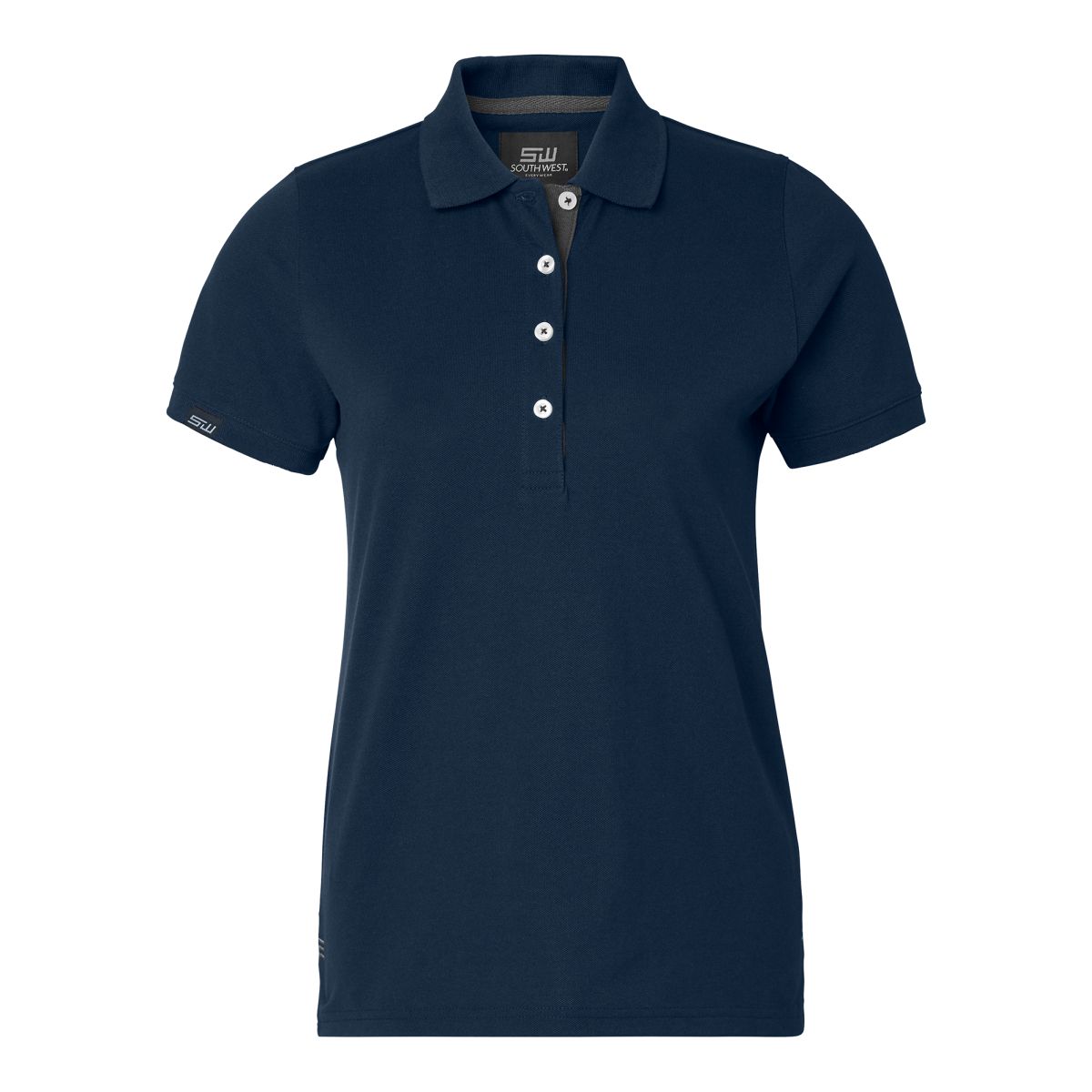 Wera Polo w, Navy/grey (954) Naisten pikeepaita, jossa tehostevärinen nappilista ja valkoiset napit. Pitkähkö nappilista tekee puserosta naisellisen. Vahvistetut saumat. Tehostevärinen niskanauha... Lue lisää