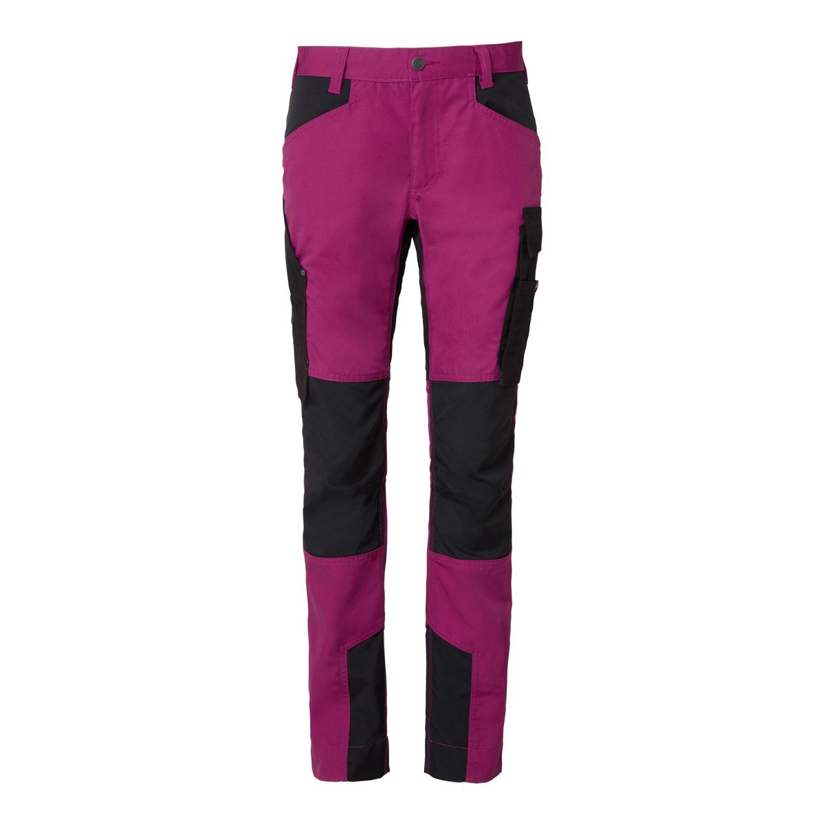 Modernit naisten työhousut kevyttä ja kulutusta kestävää materiaalia, jossa valituissa kohdissa joustavaa materiaalia liikkuvuuden lisäämiseksi. Monta tilavaa ja kätevää taskua, mittatasku ja reisitasku puhelimelle. Polvisuojataskut kahdessa tasossa ja lisävahvistukset valituissa kohdissa. Heijastinsomiste vasemmassa lahkeessa. Mahdollisuus lahkeen pidentämiseen (5 cm).