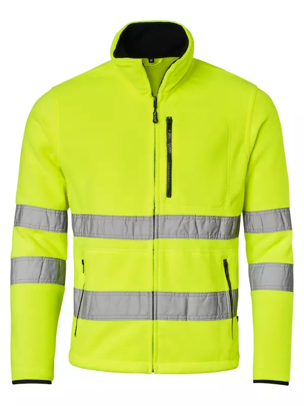Huomiovärinen fleecetakki, jossa on yksi rintatasku ja kaksi vetoketjullista etutaskua. Helmassa oleva kiristysnauha mahdollistaa säädettävän istuvuuden. Sopii erinomaisesti työympäristöihin, joissa hyvä huomio näkyvyys on ensiarvoisen tärkeää.